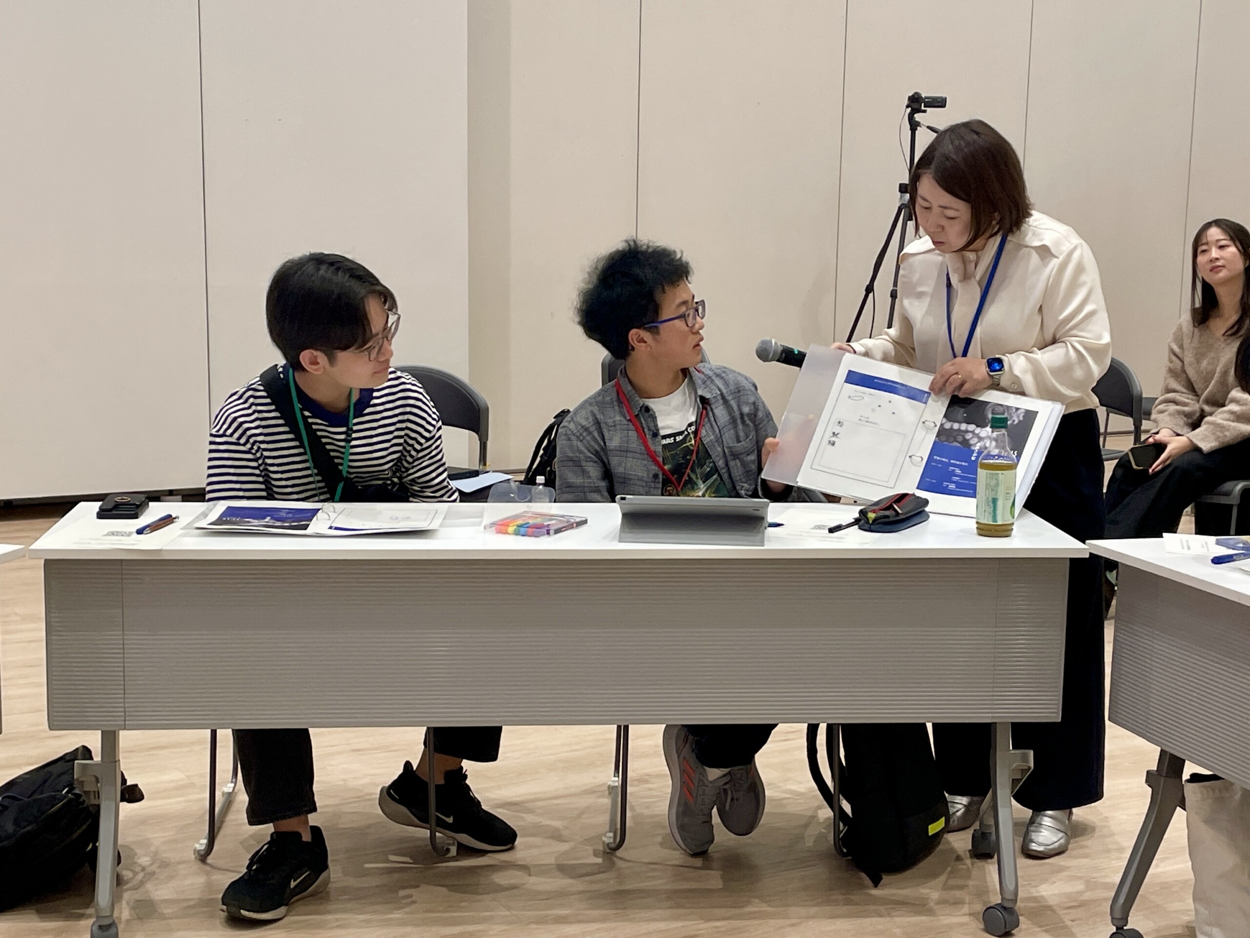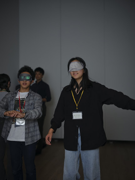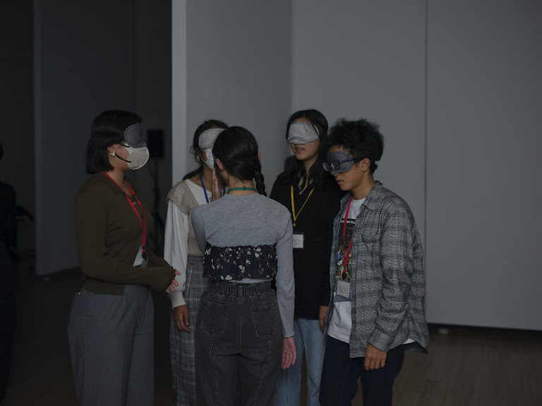 大人たちがスマートフォンの音源を使って船や工事の音を流す中、アイマスクをした魚役の生徒は聴覚だけを頼りにパートナーを探し出します。見事にたどり着けたときには歓声が上がり、同時に「海の音の多さ」や「海中騒音の深刻さ」を身をもって感じる時間となりました。