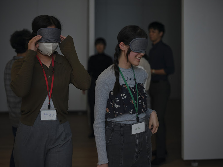 一方がアイマスクを着用し、離れた場所から互いに決めた“声の合図”を出し合いながら、声のする方向を頼りに相手を探します。