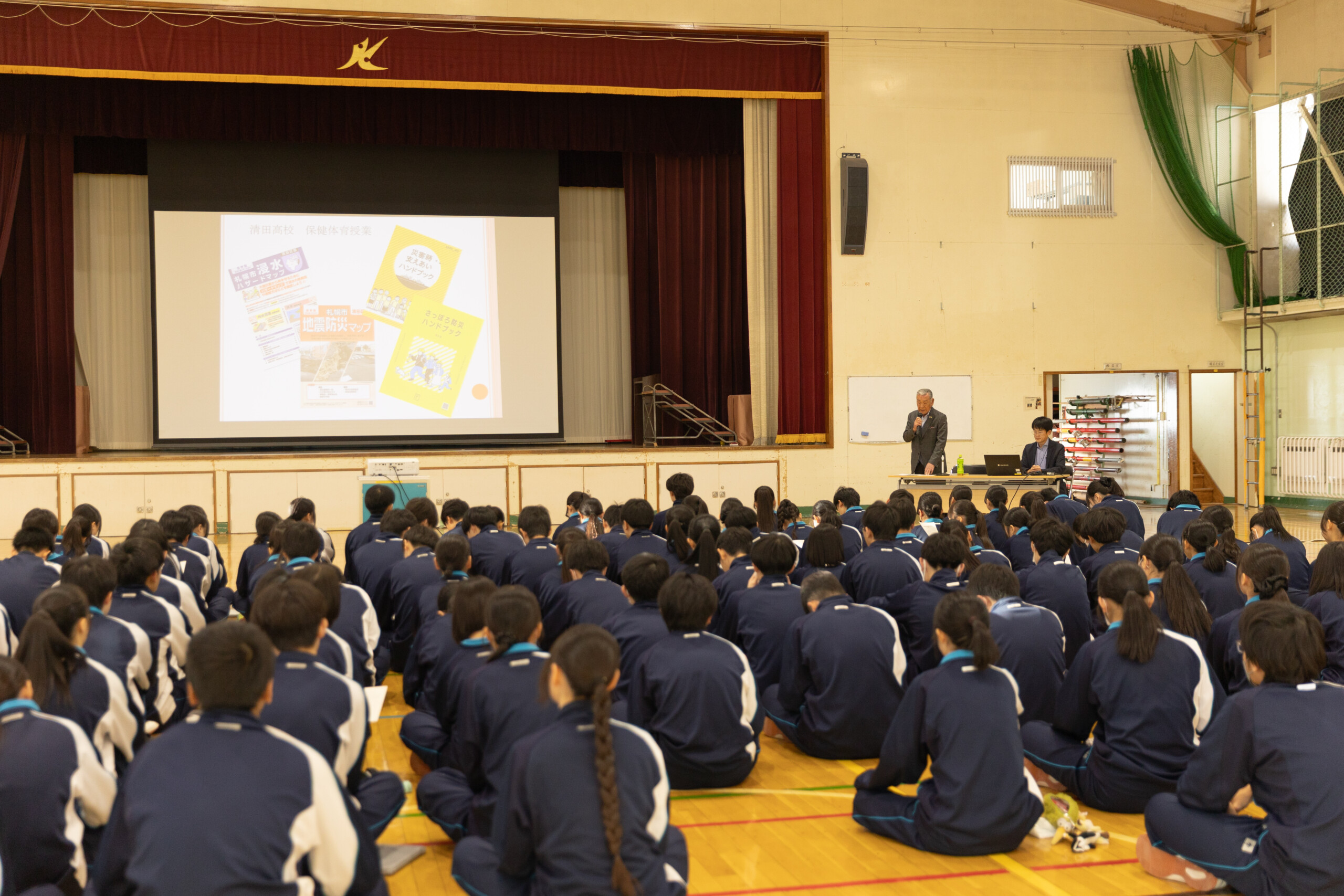近年、各地で地震や自然災害が相次ぐ中、「もし今、災害が起きたら自分はどう動けるのか」を実感をもって学ぶ機会として、清田高校で救命救急・防災講習が実施されました。今回の講習は、実際の地域防災の現場とつながる形で行われた点が大きな特徴です。